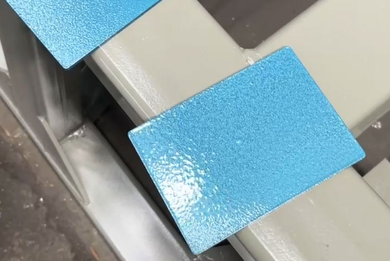 06 多棱面的工件噴涂錘紋漆時(shí),要考慮到相鄰表面之間相互沾污的可能性會(huì)影響到錘紋的美觀性,應(yīng)按先上后下,先左后右,工件面盡可能水平面進(jìn)行噴涂。